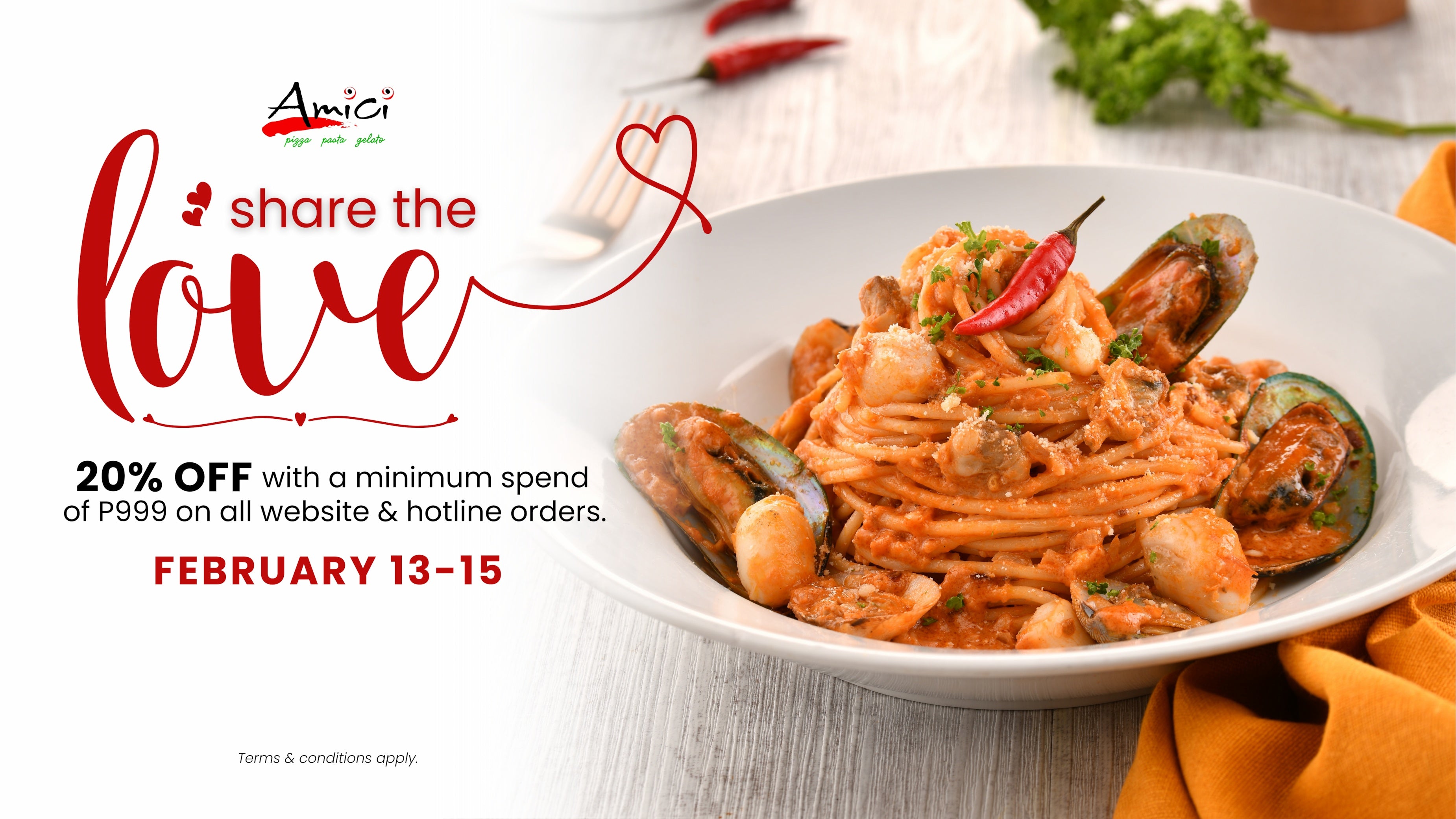 Avail of discounts every time you dine at our stores or avail of the Buy 1 Get 1 Pizza promo on your delivery order.